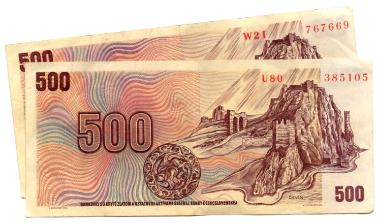 Lot 2 ks – 500 Koruna 1973, s. U a W, neperforované, stav