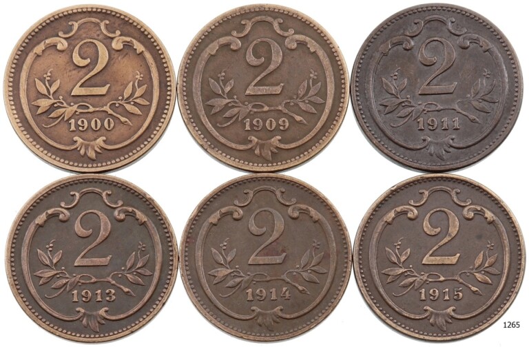 Lot 6 ks 2 Haléř 1900- 1915, stavy -0 až 1-
