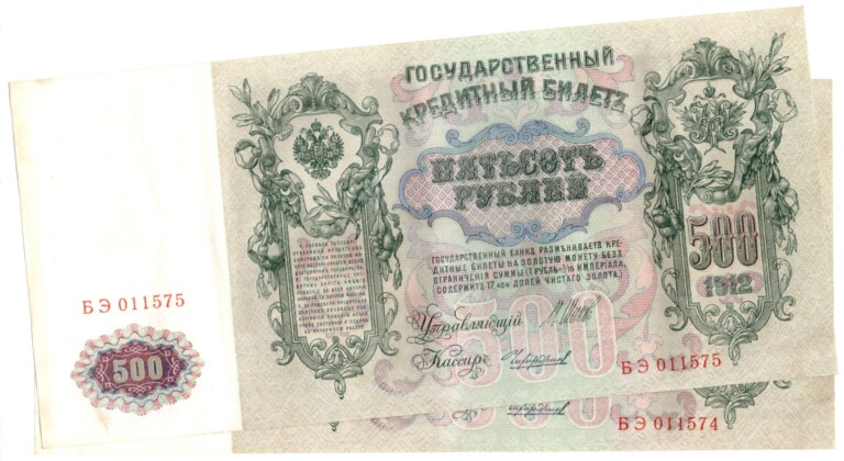 Lot 2 ks 500 Rubl 1912, stav hezké -0, číslovače za sebou