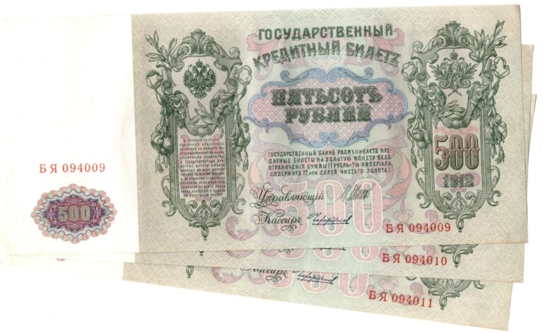 Lot 3 ks 500 Rubl 1912, stavy 0, číslovače za sebou