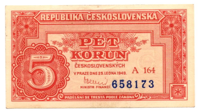 5 Koruna 1949, s.A164, neperforovaná, stav 0
