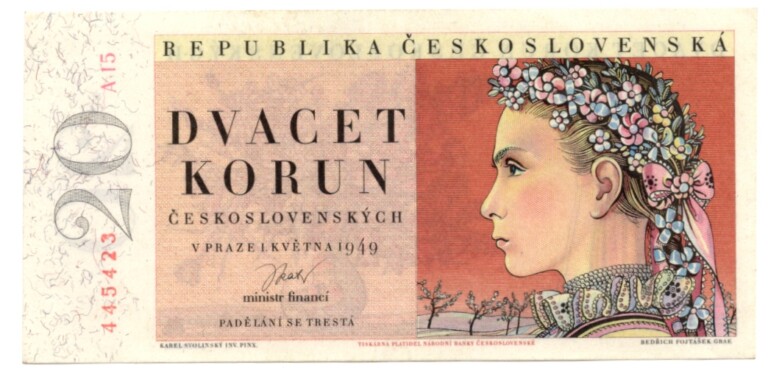 20 Koruna 1949, s.A19, neperforovaná, stav N