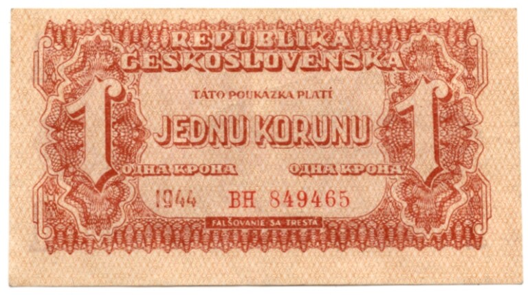 1 Koruna 1944 (1945), s. BH, neperforovaná, stav 1-