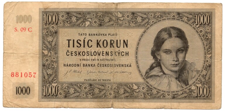1000 Koruna 1945, s.C 09, II. vydání, neperforovaná, stav 3
