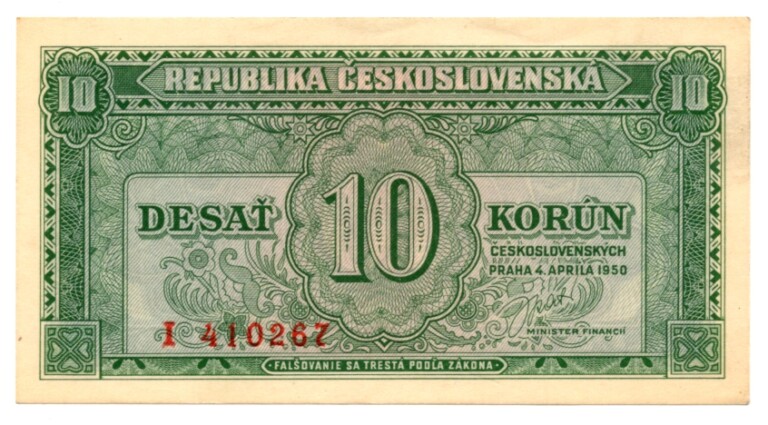 10 Koruna 1950, s.I, neperforovaná, stav 0-