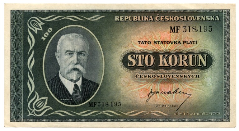100 koruna 1945, neperforovaná, s. MF, stav hezká 1-
