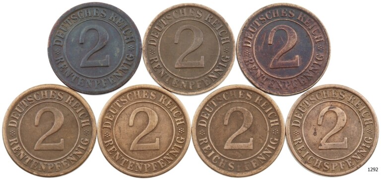 Lot 7 ks 2 Renten pfennig 1924 A,D,E,F,J a 2 Reichs pfennig 1924