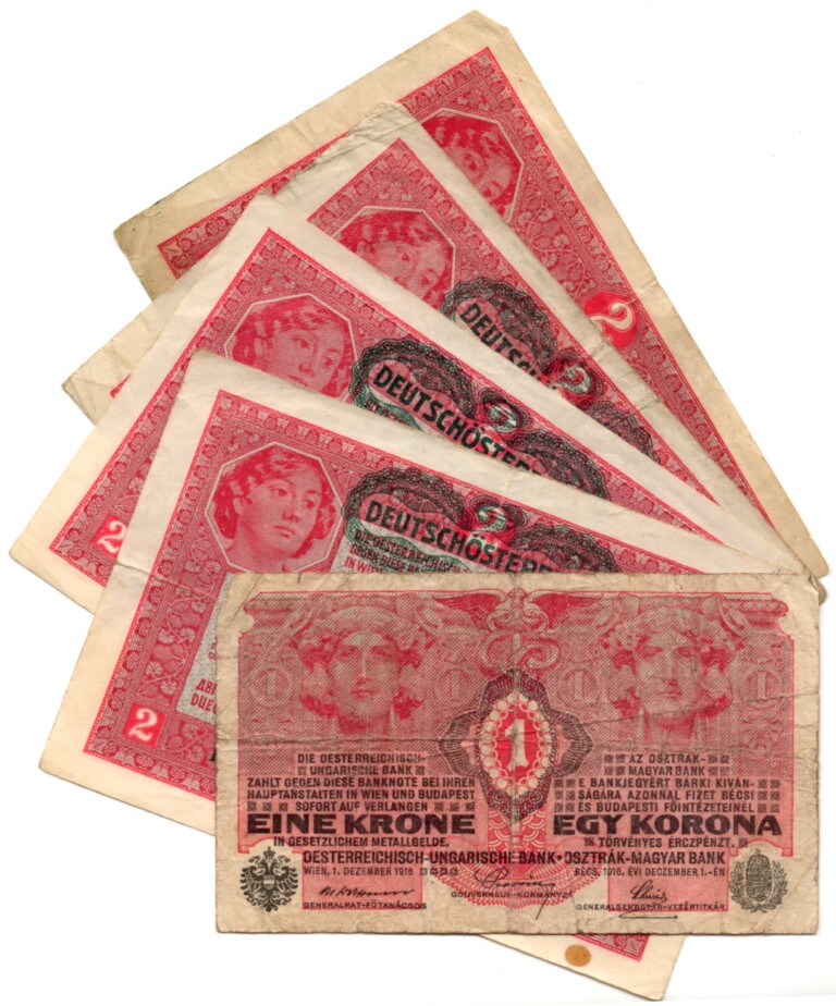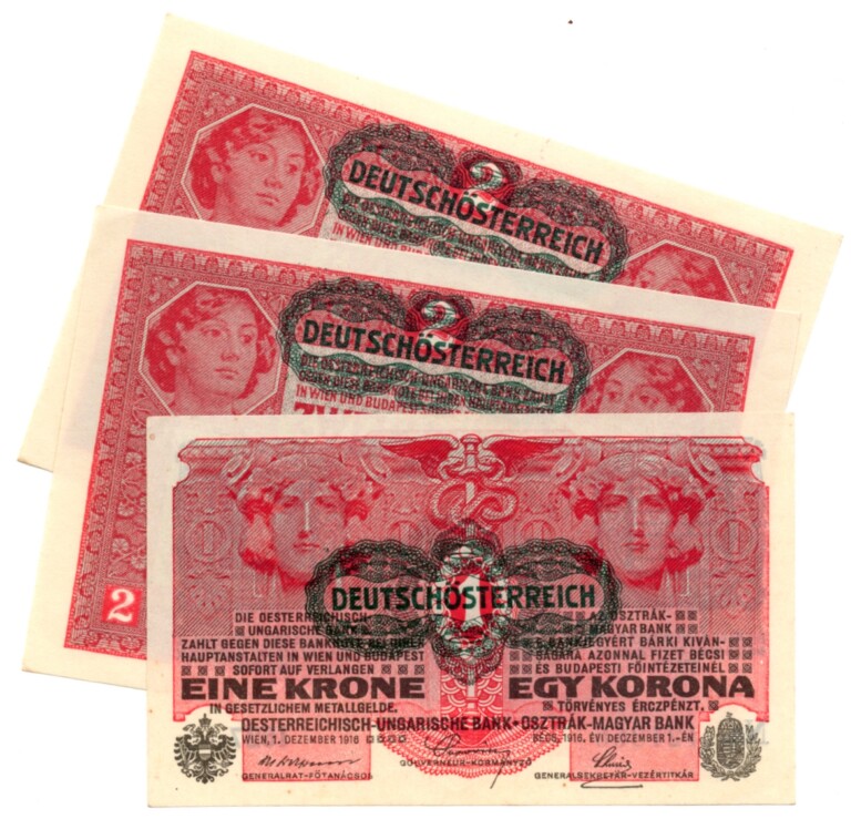 Lot 5 ks 1 a 2 Koruna 1916 a 1917 razítko „DEUTSCHOSTERREICH“,