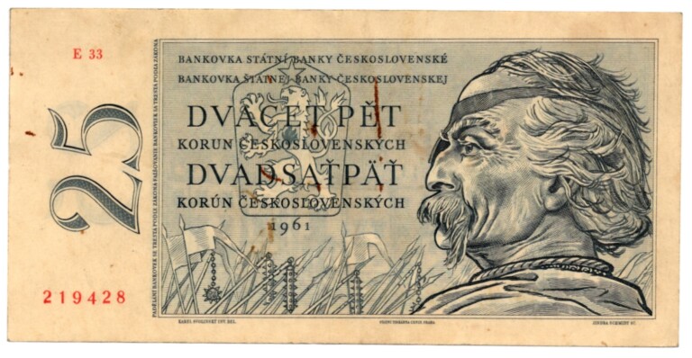 25 Koruna 1961, s.E33, neperforovaná, stav 1-, rezavé stopy