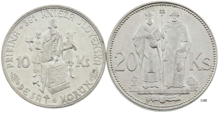 Lot 2 ks stříbrných mincí, 10, 20 koruna 1944, stav 1