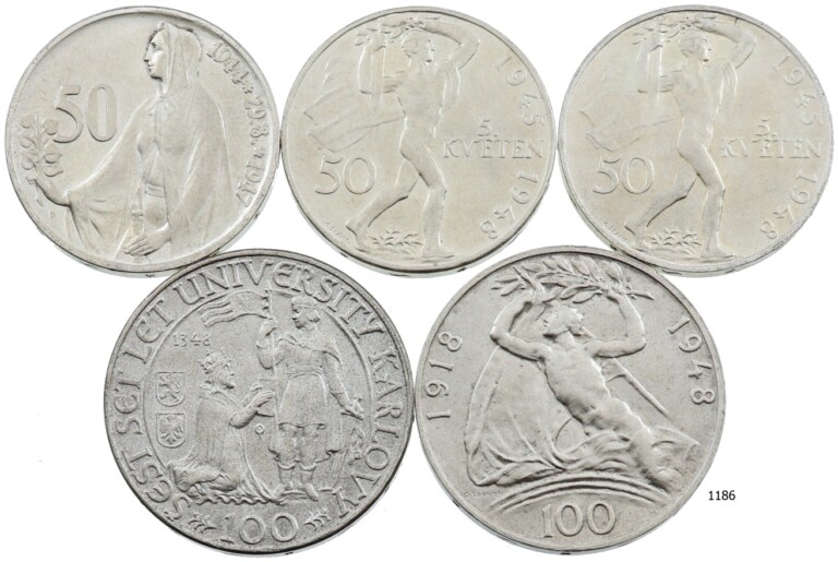 Lot 5 ks AR pamětních mincí 1947 a 1948, stav -0