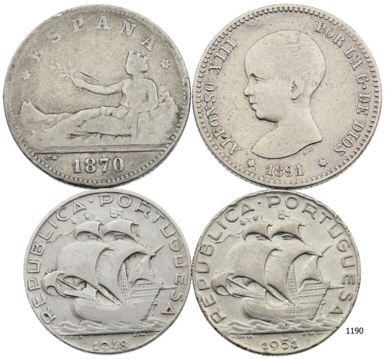 Lot 4 ks Ag mincí Španělsko, Portugalsko, stav 2 až 3