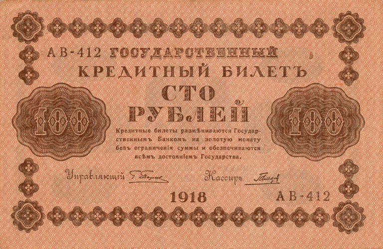 100 Rubl 1918, s.AB , stav 0-