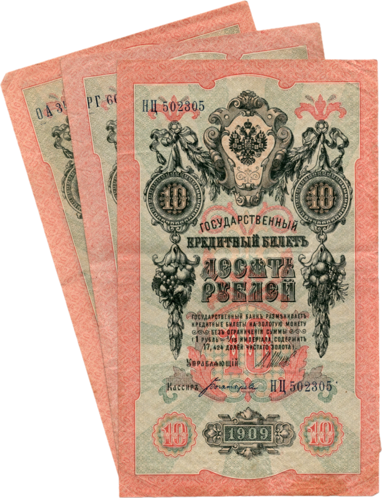 …3 Rubel 1919, s.A-A-103 (stejná serie a čislo jako v katalogu