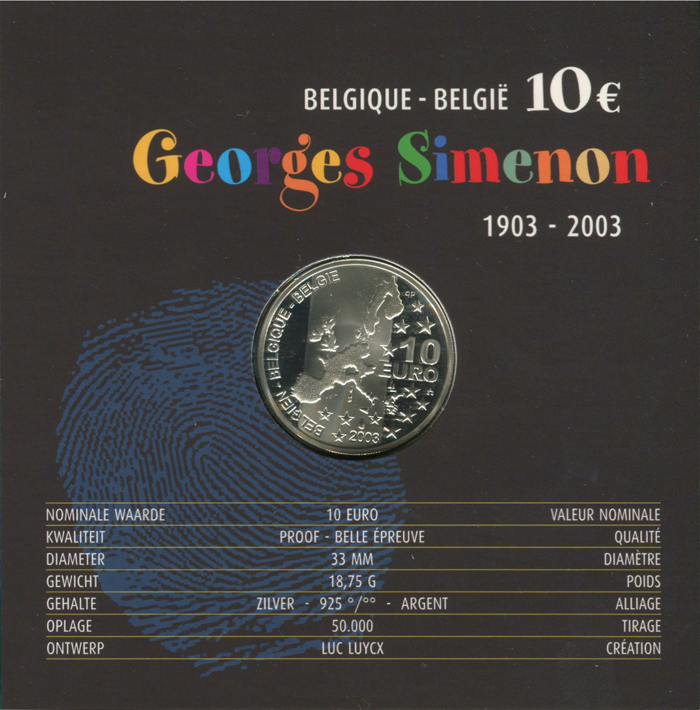 10 Euro 2003 PROOF – Georges Simenon 1903-2003