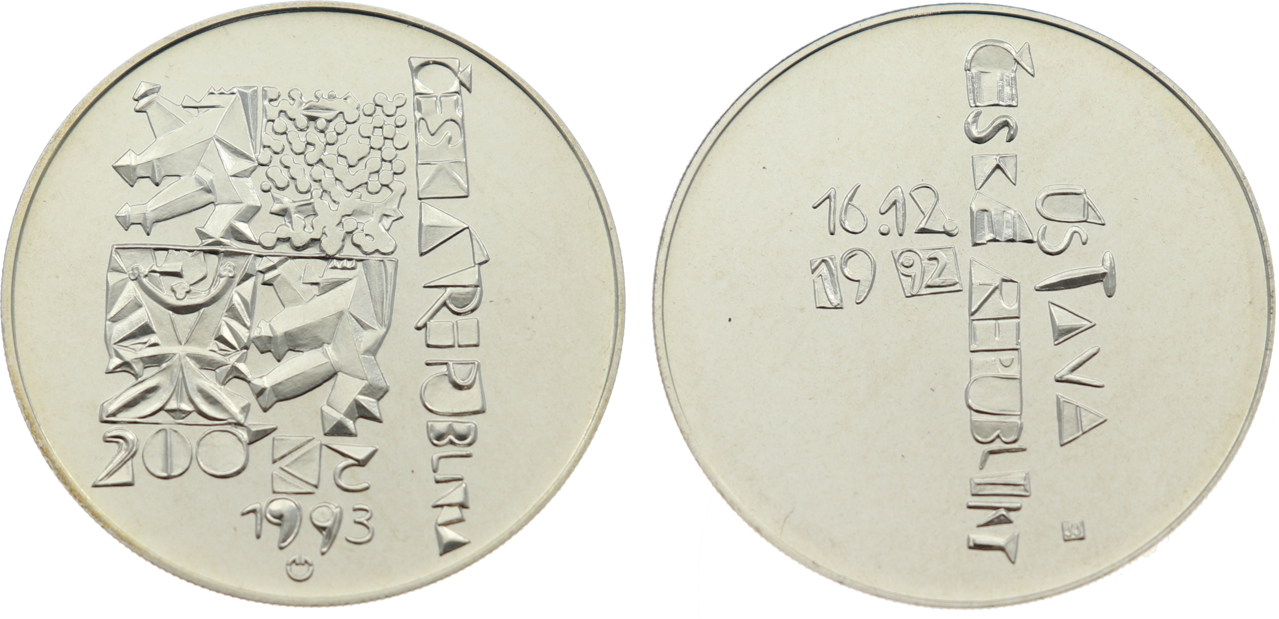 200 Koruna 1993 BK – 1. výročí Ústavy České republiky, certifikát