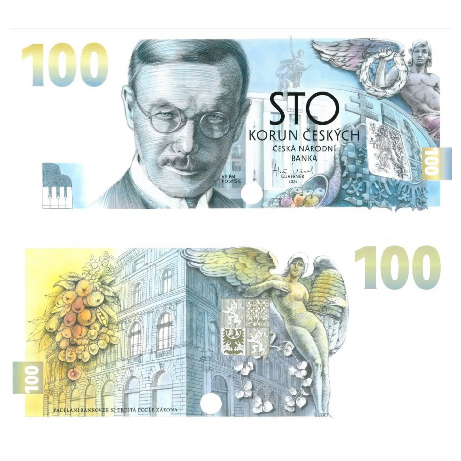 Pamětní bankovka v nominální hodnotě 100 Kč – Vilém Pospíšil, emise 2026, stav UNC