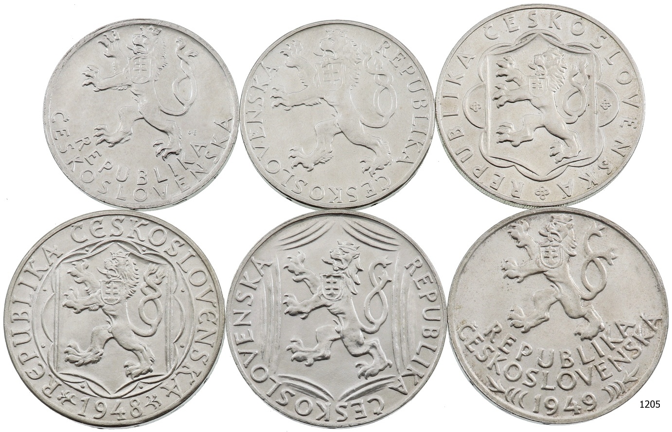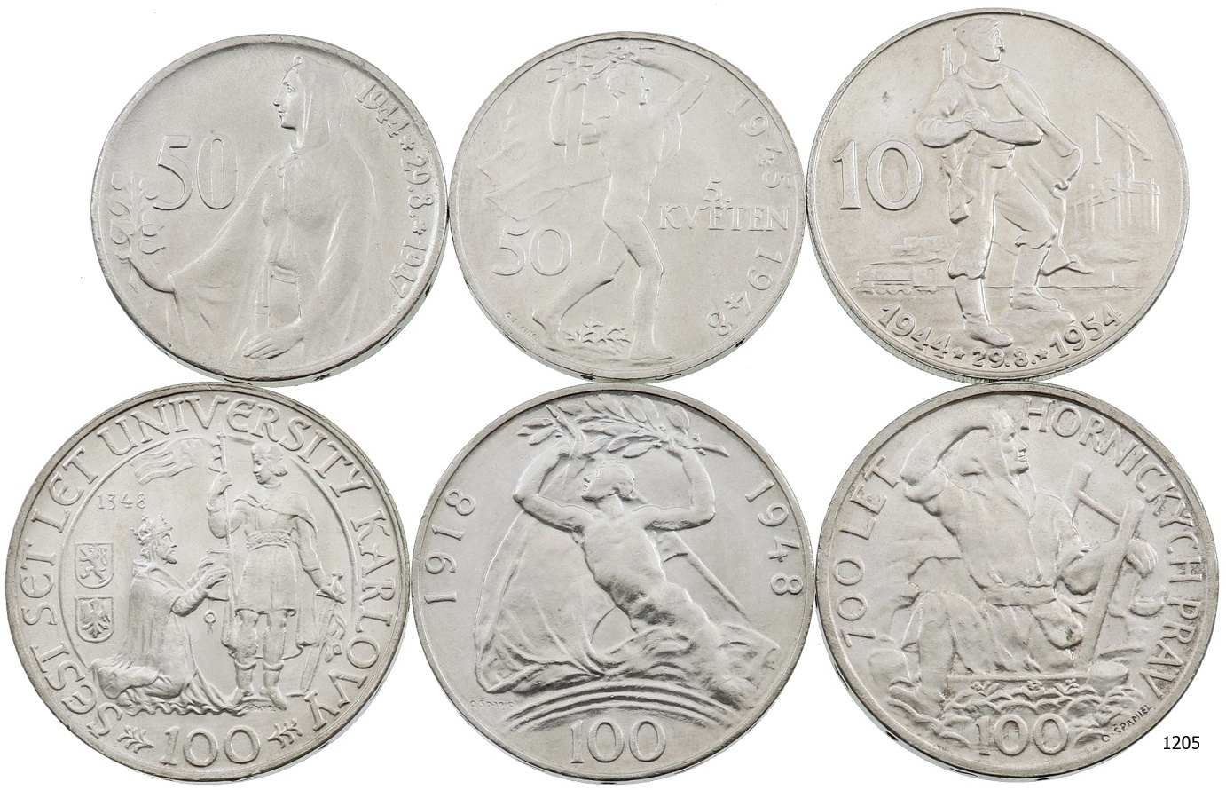 Lot 6 ks pamětních mincí 1947 a 1954, stav -0