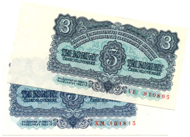 Lot 2 ks 3 Koruna 1953 a 1961, perforovaná, stav N