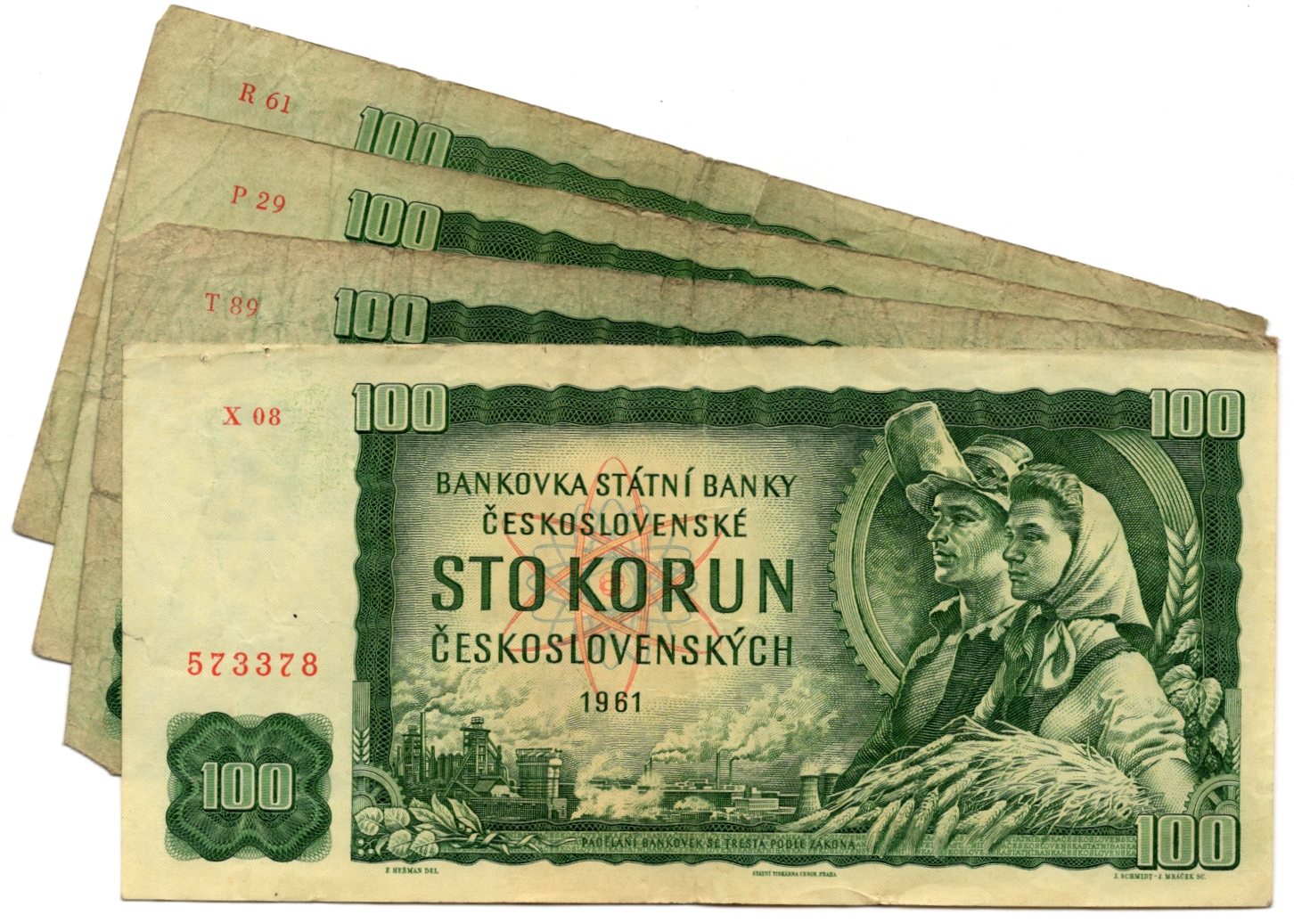Lot 4 ks 100 Koruna 1961, neperforované, stav 2 až 3-
