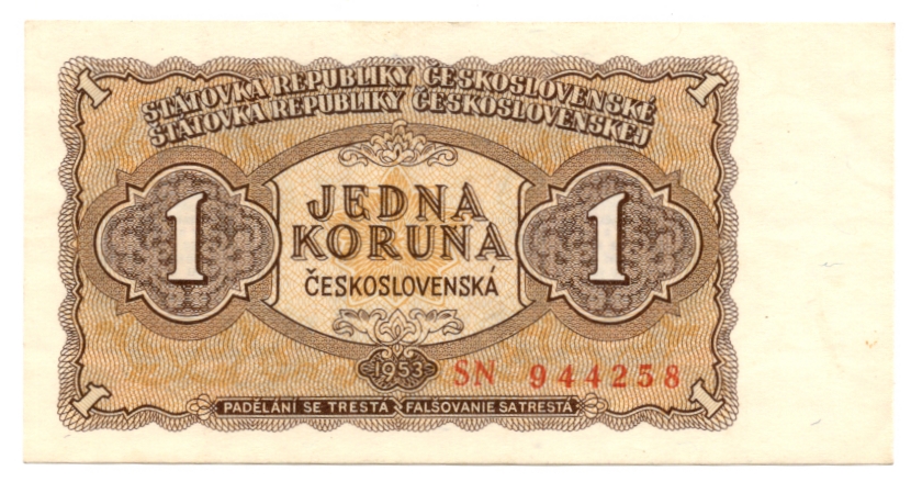 1 Koruna 1953, s. SN, neperforovaná, stav 0