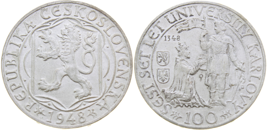 100 Koruna 1948 – 600. výročí založení University Karlovy, stav 0/0