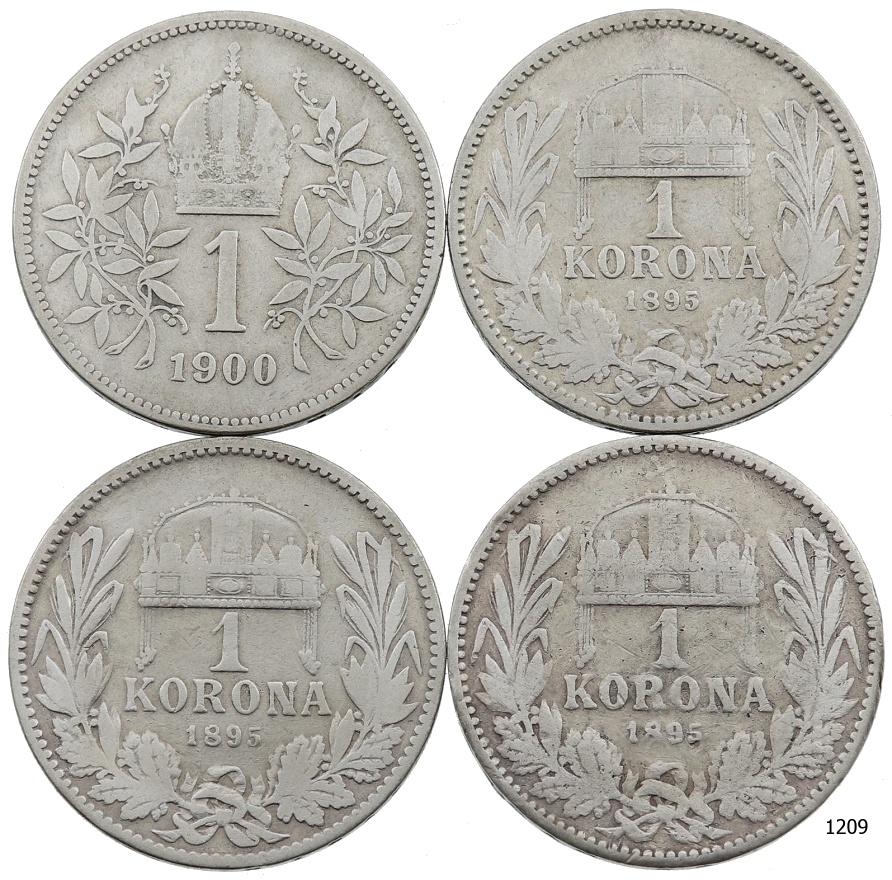 Lot 4 ks 1 koruna 1900 b.l., 1895 KB, stav 2 až 3