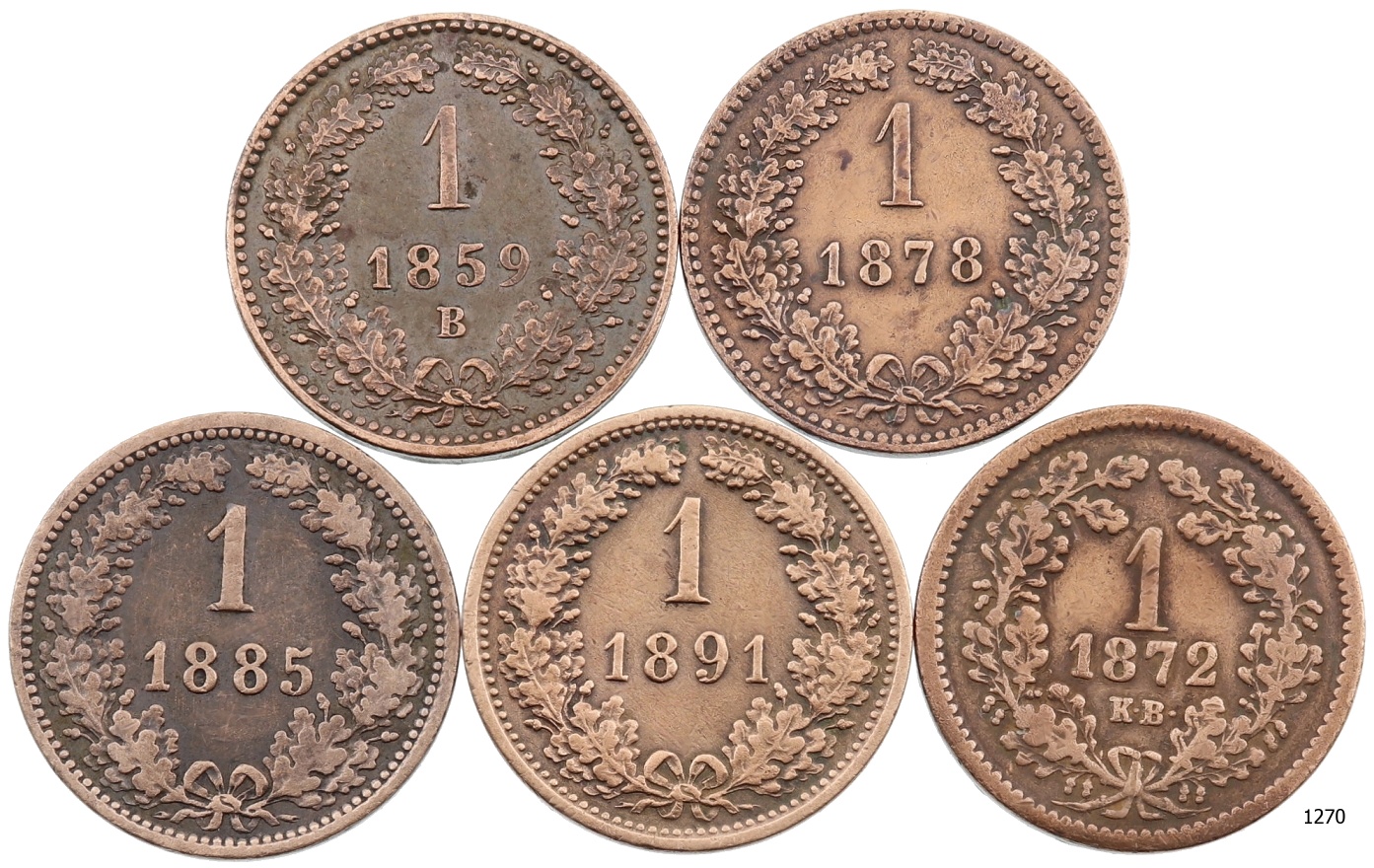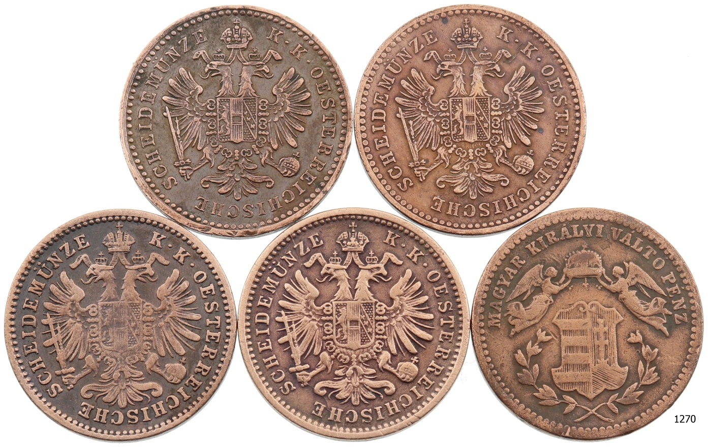 Lot 5 ks AE mincí 1859 – 1872, stavy 1 až 2