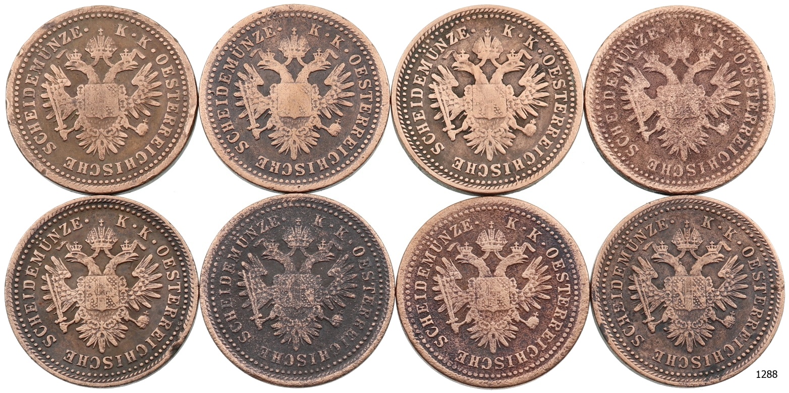 Lot 8 ks AE 1 Krejcar 1851 A, stavy 2 až 2-