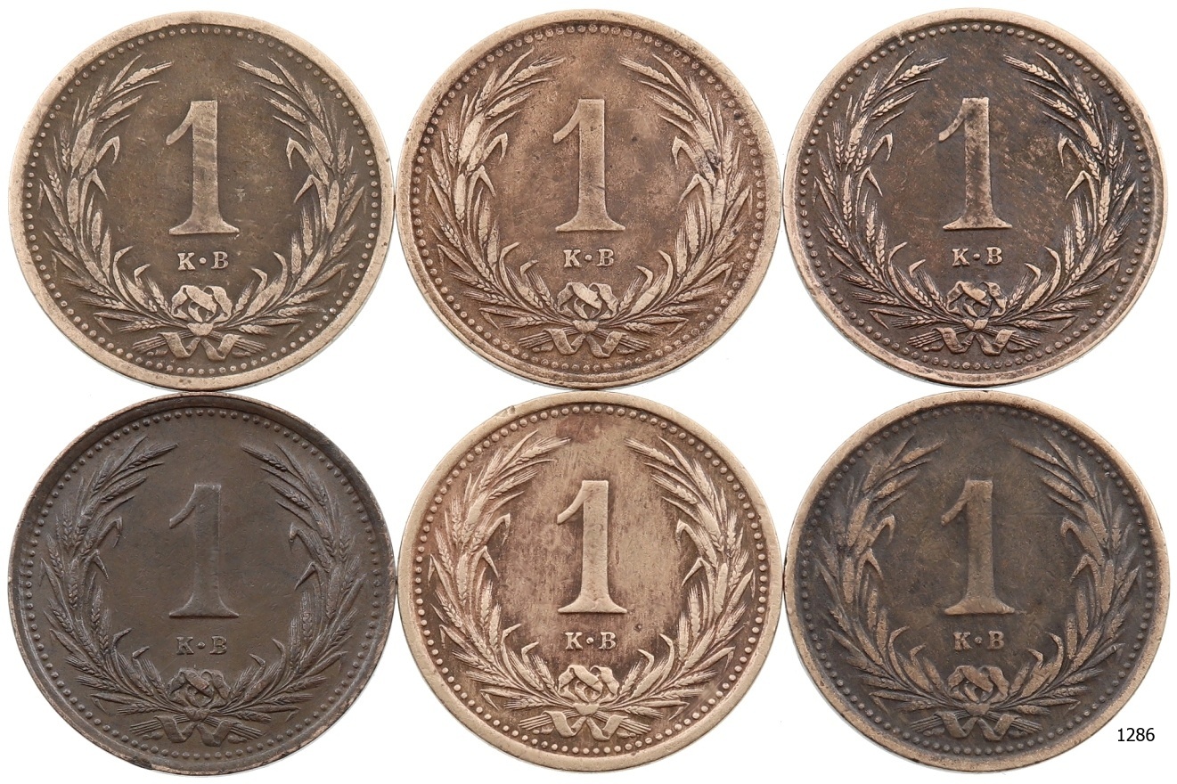 Lot 6 ks AE 1 Haléř 1893 – 1899 vše KB, stavy -1 až 2