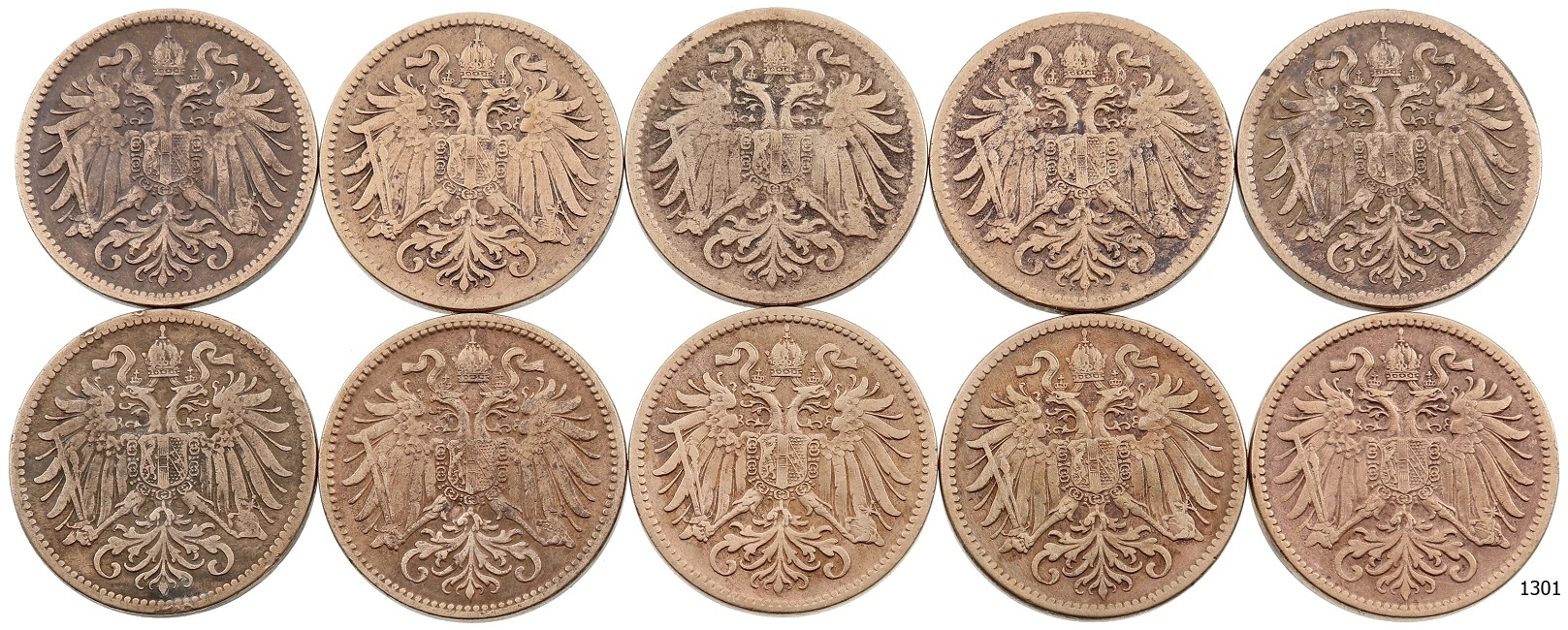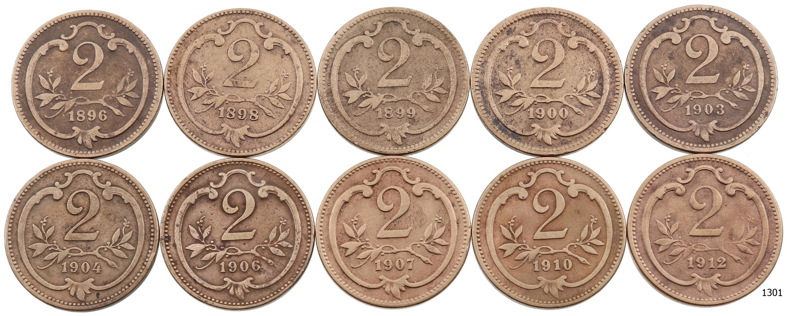Lot 10 ks AE 2 Haléř 1896 – 1912, stavy -1 až 2