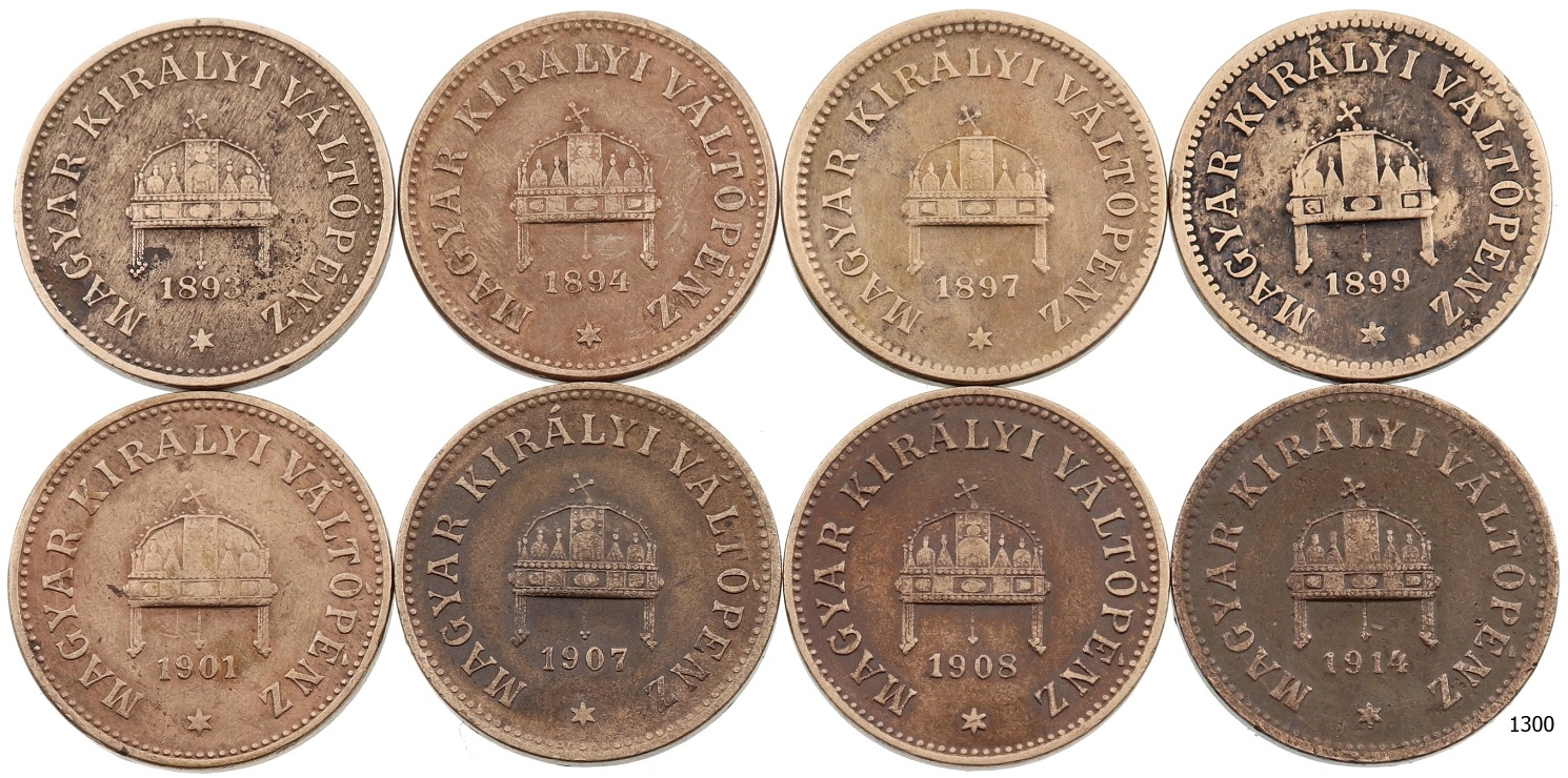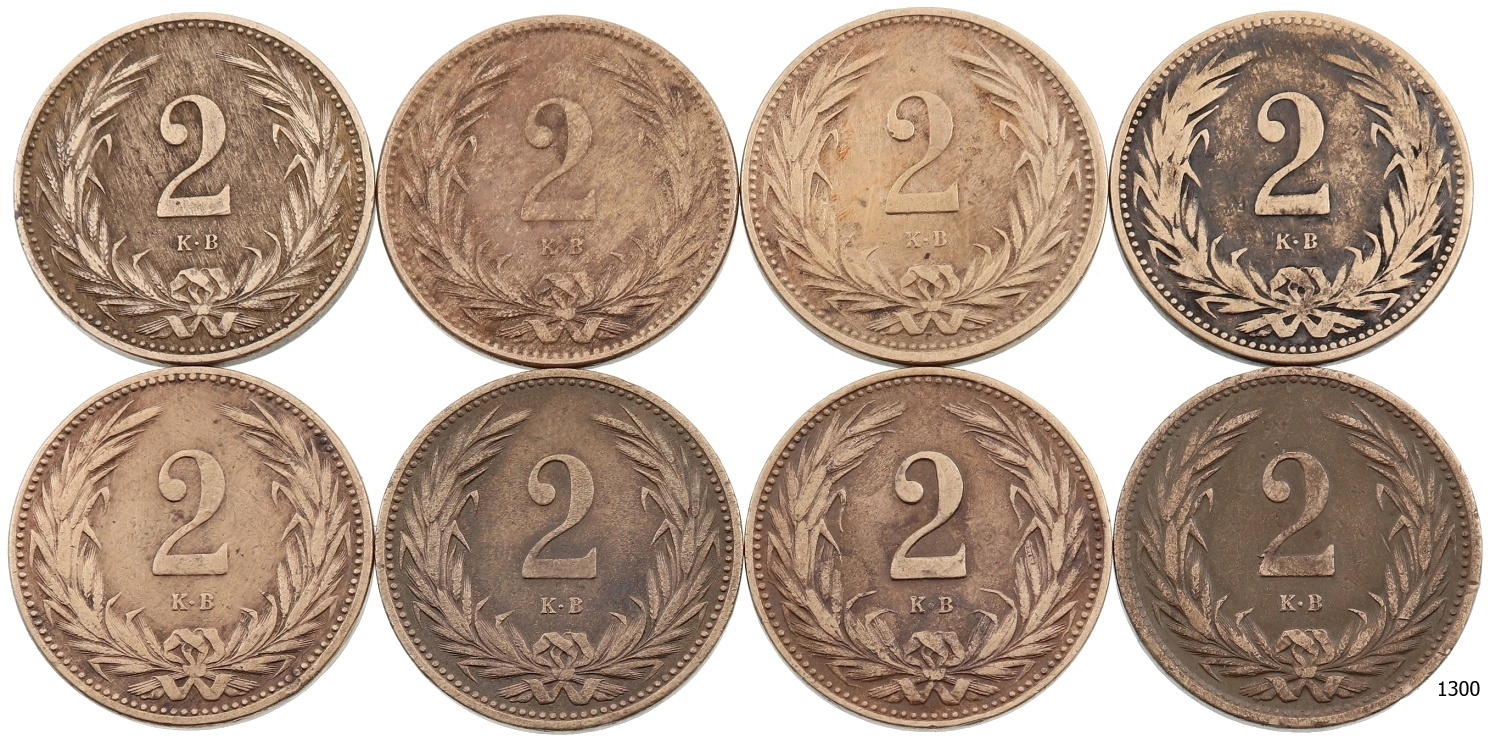Lot 8 ks AE 2 Haléř 1893 – 1914 vše KB, stavy -1 až 2-