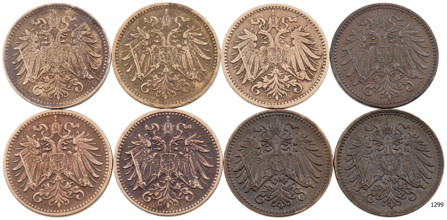 Lot 8 ks AE 1 Haléř 1893 – 1916, stavy -0 až 1