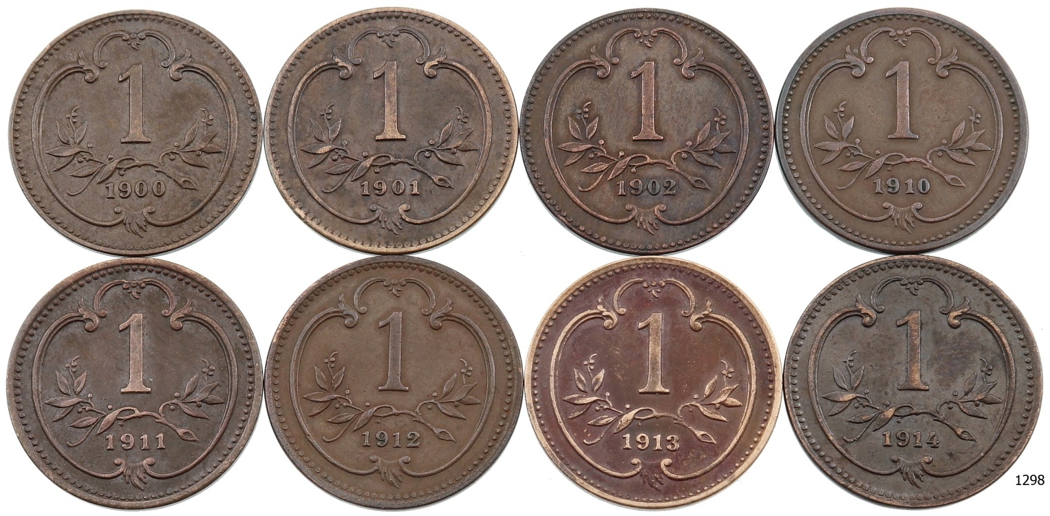 Lot 8 ks AE 1 Haléř 1900 – 1914, stavy -0 až 1