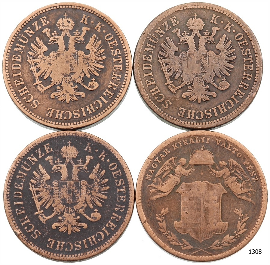 Lot 4 ks 4 Krejcar, 1860 a 1861 A, 1864 B, 1868 KB, stav 3