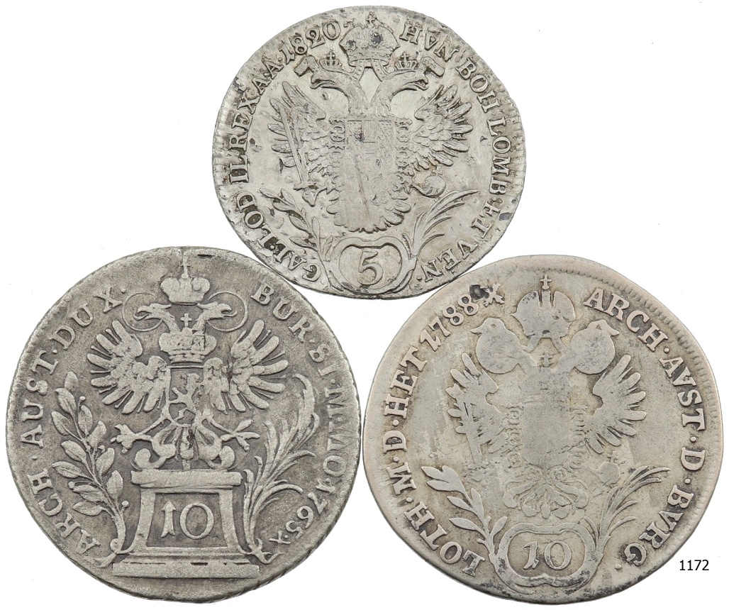 Lot 3 AR mincí  – 10 a 5 krejcar 1765 – 1820, stavy -2 až 3