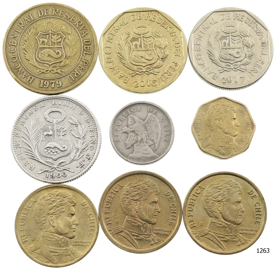 Lot 9 ks AR a AE mincí – Argentína, Uruguay, Paraguay, Venezuela, stav 0 až 2-