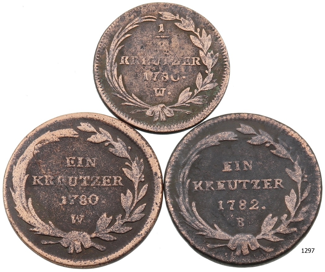 Lot 3 ks AE mincí 1/2 a 1 krejcar 1780 – 1782, stav 2 až 3