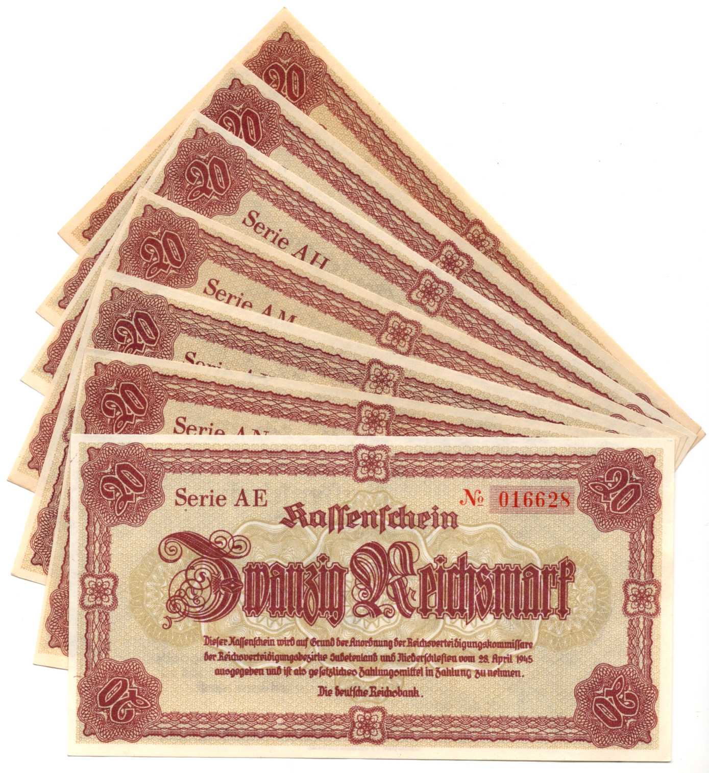 Lot 7 ks 20 Marka 1945, platila na území Sudet – tzv. liberecká poukázka, stavy 0