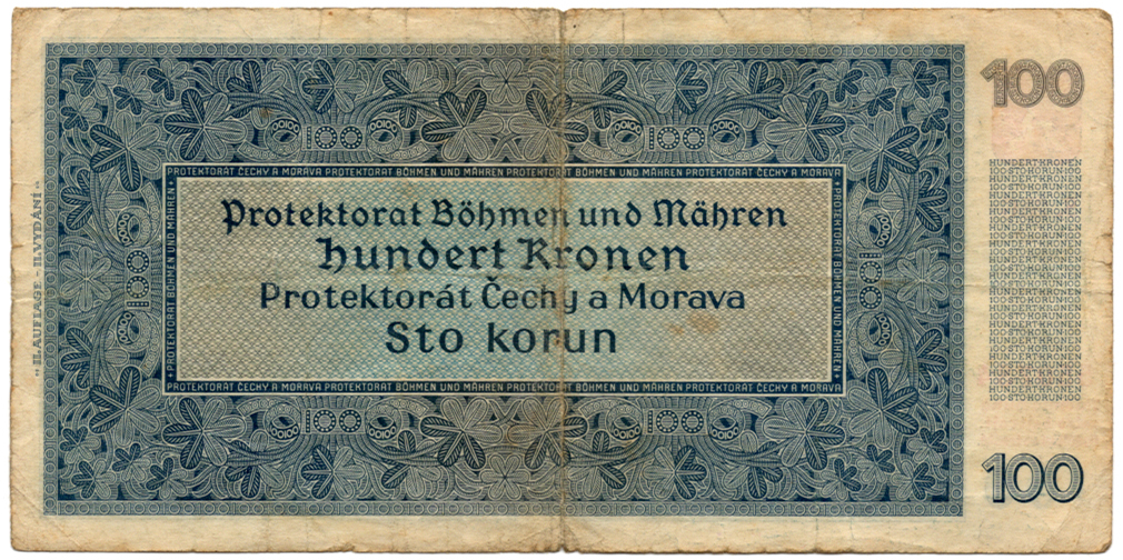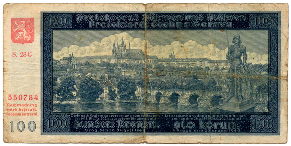 100 Koruna 1940, série 28 G, II. vydání, neperforovaná, stav 4