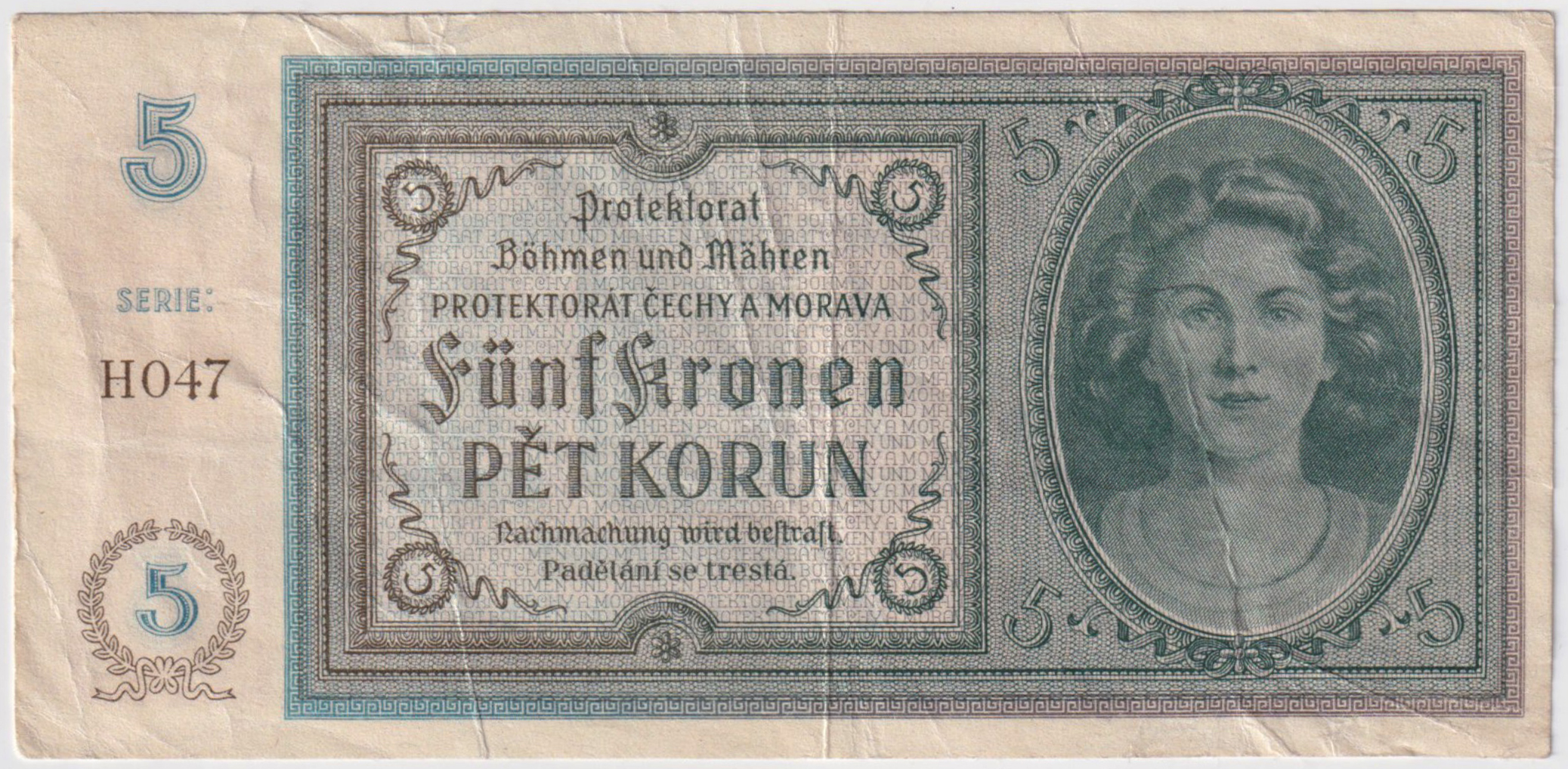 5 Koruna 1940, s.H, neperforovaná, stav 2