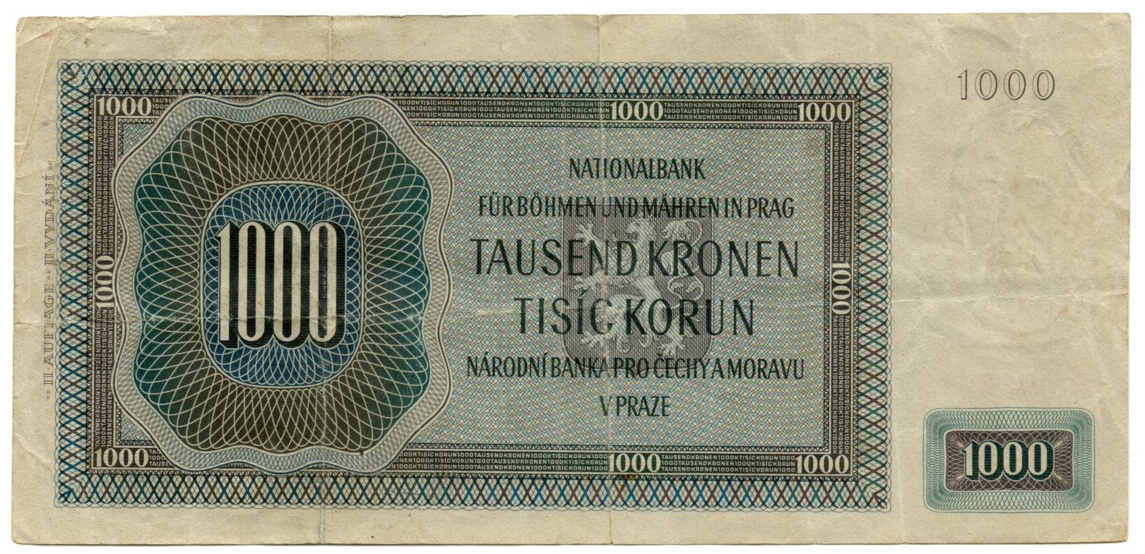 1000 Koruna 1942 (II. vydání), Ec, neperforovaná, stav 2-