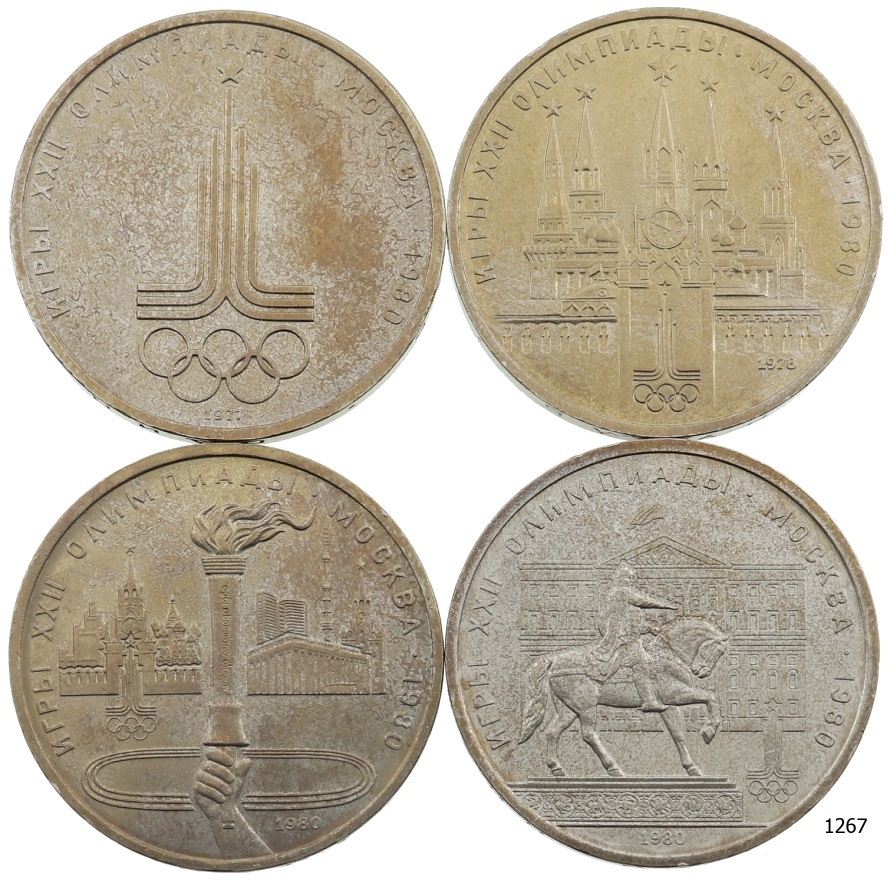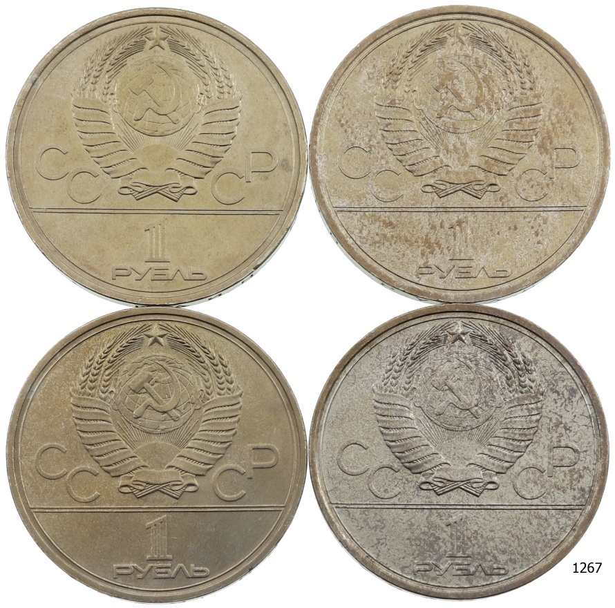 Lot 4 ks AE mincí 1 rubl 1977 – 1980, stavy -0
