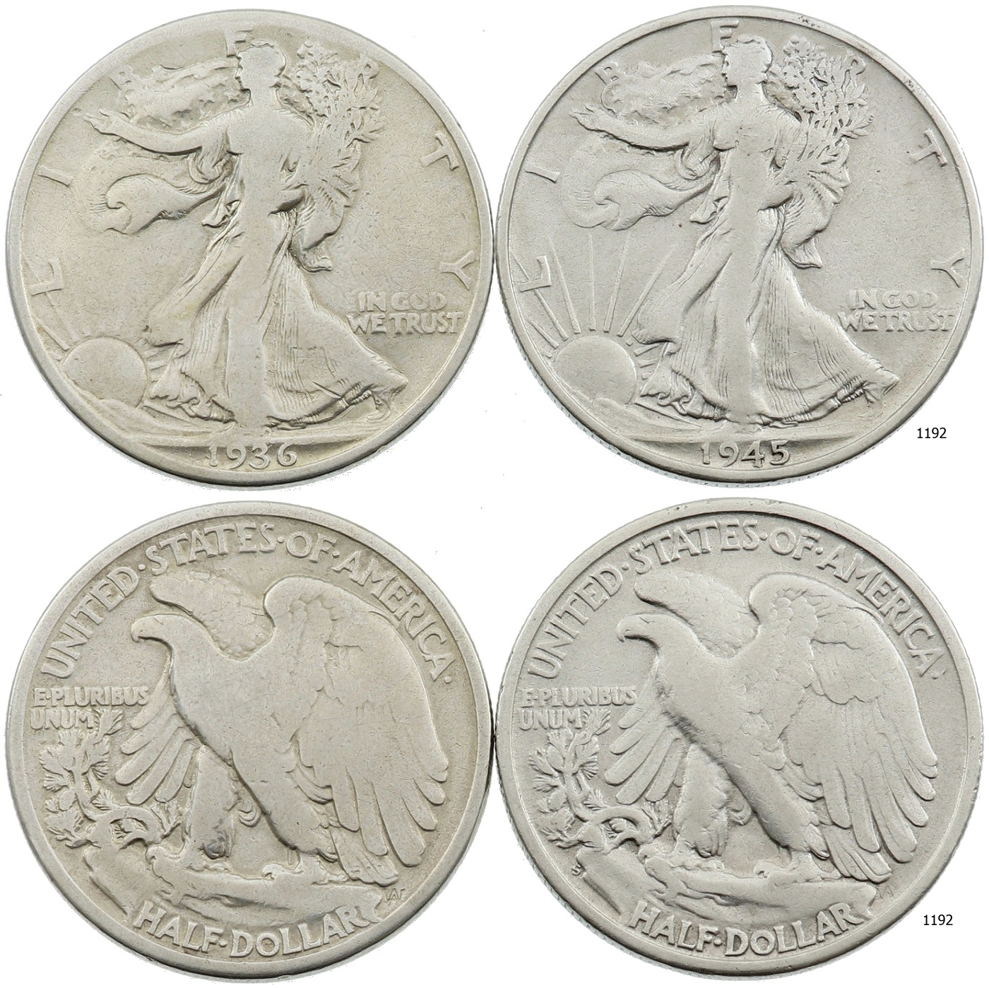 Lot 2 ks mincí 1/2 Dollar 1936 a 1945 S, stav 3