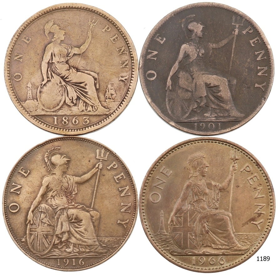 Lot 4 ks Penny 1863 – 1966, stav -0 až 2